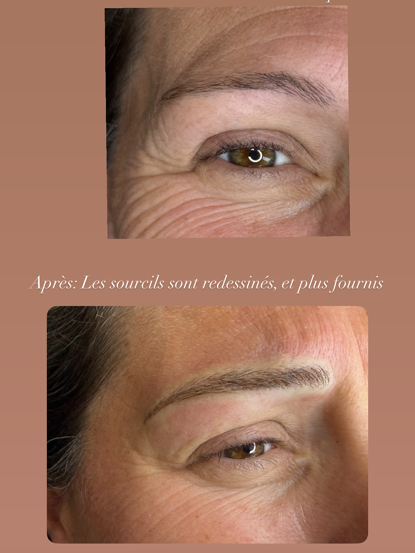 Ma cliente souhaitait redessiner ses sourcils, avoir un corps et une queue de sourcils tout en restant le plus naturel possible et discret voici le résultat: